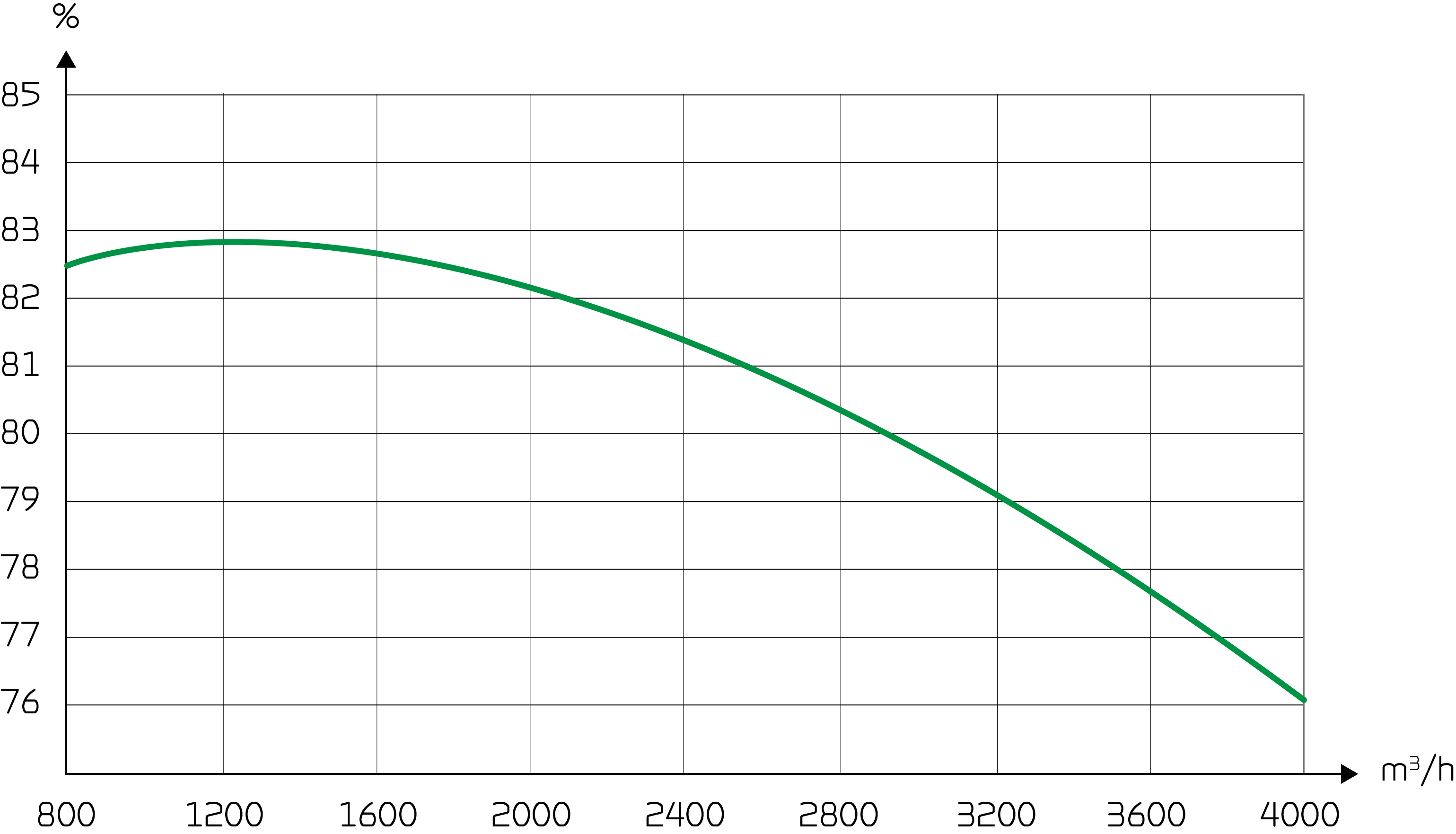 Temperature efficiencyTemperture efficiency for rotatry heat exchanger according to EN308 (dry). |